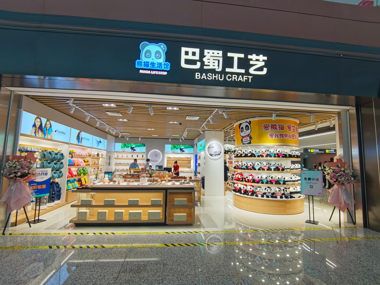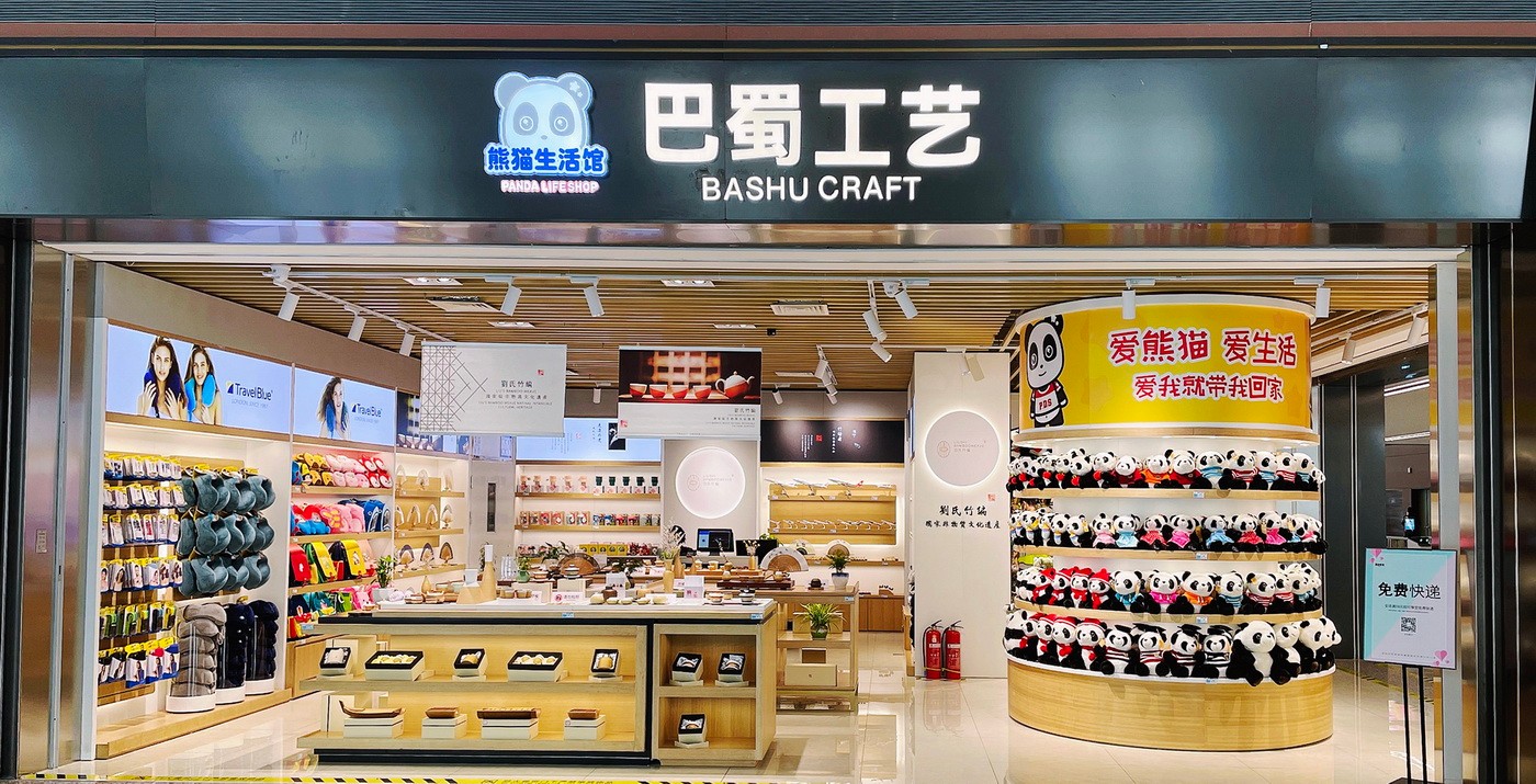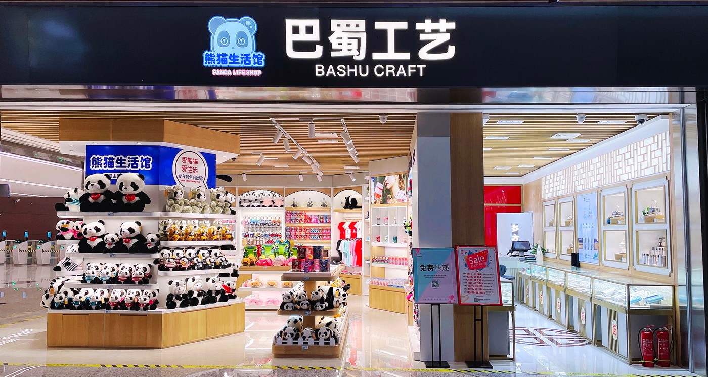 成都天府國際機(jī)場巴蜀工藝店有兩家店,分別位于出發(fā)大廳兩側(cè)。