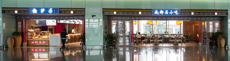 食在中國,味在四川,風(fēng)味小吃,冠絕天下,人杰地靈,天府之國! 從各色小面到抄手、餃子,從腌鹵到?jīng)霭枥涫?,從鍋煎蜜餞到糕點(diǎn)湯圓,從蒸煮烘烤到油酥油炸,100多種小吃琳瑯滿目;龍抄手、賴湯圓、夫妻肺片、麻婆豆腐、雙流兔頭、川北涼粉等齊聚一堂,各味俱全。成都名小吃將成都各類小吃搬到機(jī)場,從此,在機(jī)場也可以感受到成都大街小巷的濃濃的生活氣息。 成都名小吃種類繁多,從腌鹵到?jīng)霭枥涫?,從鍋煎蜜餞到糕點(diǎn)湯元,從蒸煮烘烤到油酥油炸,琳瑯滿目,各味俱全。