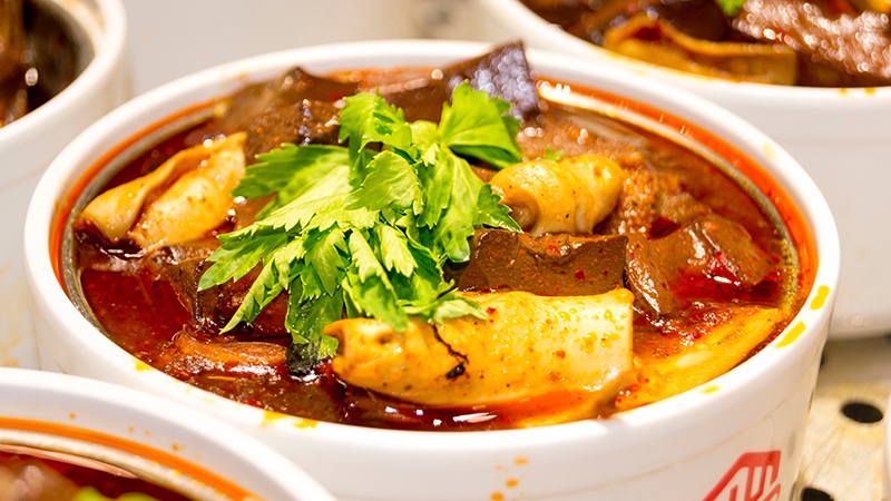 歷史悠久,以牛頭皮、牛心、牛舌、牛肚、牛肉為主材料,注重選料,制作精細(xì),調(diào)味考究。